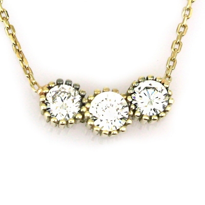3 Taş Elmas Montürlü Altın Kolye (8 Ayar)