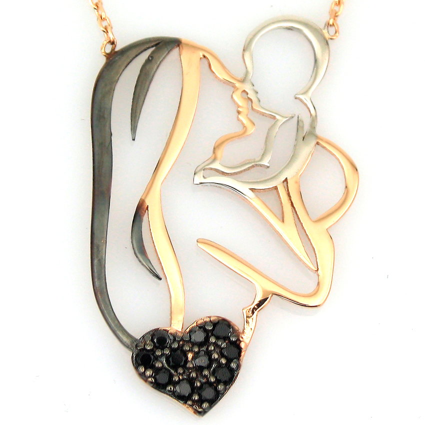 Altın Anne Çocuk Kolyesi (14 Ayar) Siyah Taşlı