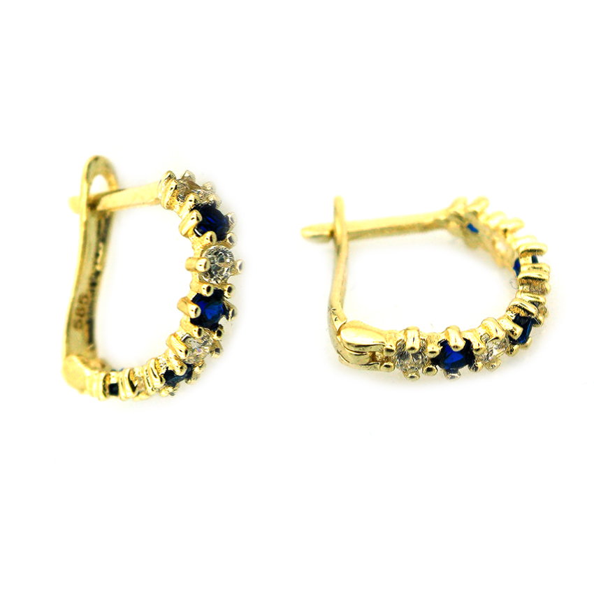Altın Mavi Taşlı J Çocuk Küpesi (14 Ayar)