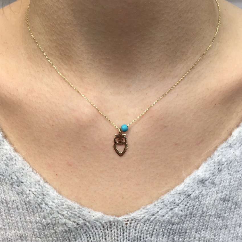 Altın Zarif Baykuş Kolye (14 Ayar)