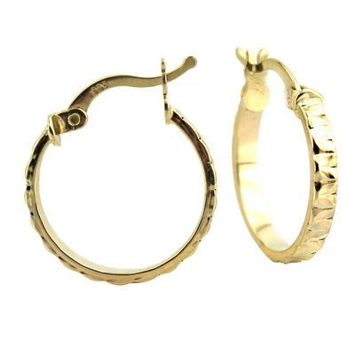 Hafif Lazer İşlemeli Taşsız Altın Halka Küpe (14 Ayar)