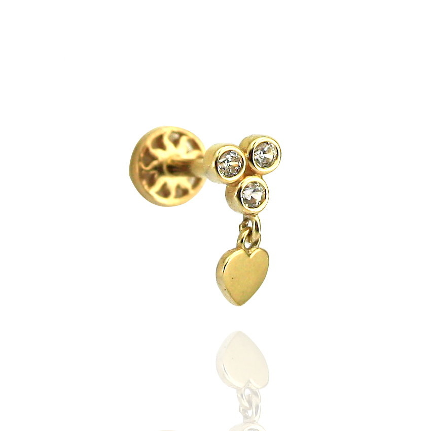 Kalpli Sallantılı Üçtaş Tragus Helix Piercing Küpe (14 Ayar)