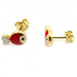 Mineli Balıklı Altın Küpe (14 Ayar)