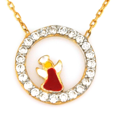 Taşlı Mineli Altın Melek Kolye (8 ayar)