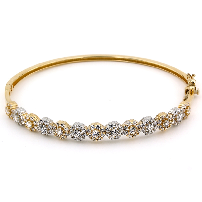 Taşlı Yuvarlak İki Renk Altın Kelepçe Bilezik (14 Ayar)