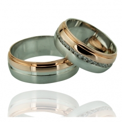 İki Renk Taşlı Tamtur Altın Alyans (14 Ayar)